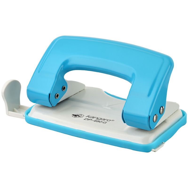 Компактный дырокол Kangaro DP-480 G. Изготовлен целиком из металла, со съемным пластиковым контейнером, предохраняющим поверхность стола от царапин. В комплекте линейка деления на форматы: А4, А5, А6.