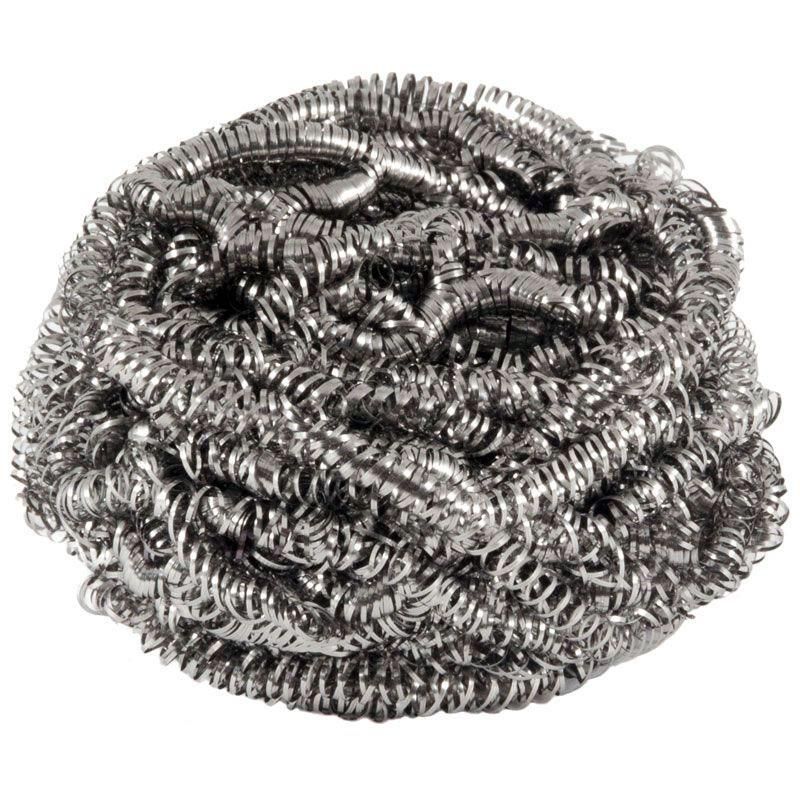 Мочалка для посуды металлическая, спираль Диаметр: 7 см/3 см, лента Ширина 0,7 мм Вес 12 гр. материал: нержавеющая сталь упаковка: ПВХ пакет с европодвесом Металлическая мочалка эффективно очищает сильно загрязненные поверхности и удаляет жир. Мочалка идеально подходит для чистки раковин и плит, сковородок и кастрюль, грилей, решеток и других инструментов для жарки. Специальная обработка краев спирали у мочалки, гарантирует отсутствие возможности повреждения рук при использовании.