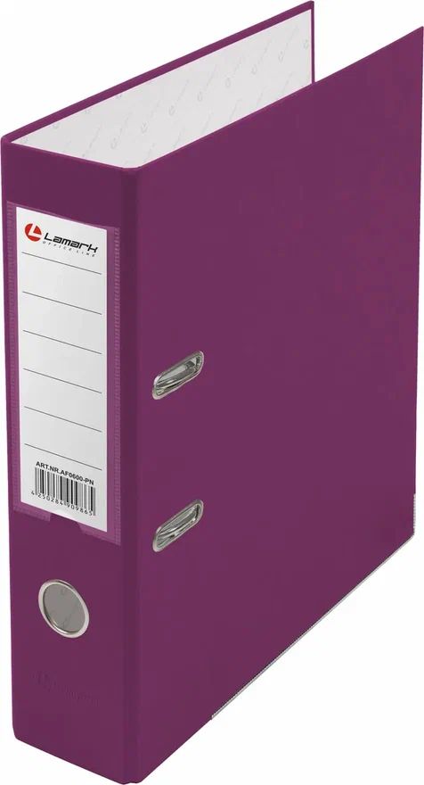 Папка-регистратор LAMARK РР с арочным механизмом изготовлена из плотного картона, с внешней стороны заламинированного полипропиленовой пленкой (РР) с текстурой "лен", внутри оклеена бумагой с алфавитно-цифровым полем для классификации на левой стороне. Прорези на крышке удерживают папку закрытой даже при большом количестве документов. Ширина корешка 80 мм. Вместимоть до 480 листов формата А4. Нижние края защищены металлическим кантом, что сохраняет папку при длительной интенсивной эксплуатации. Карман со сменной индексной вставкой на корешке. Цвет розовый. Поставляются в разобранном виде.