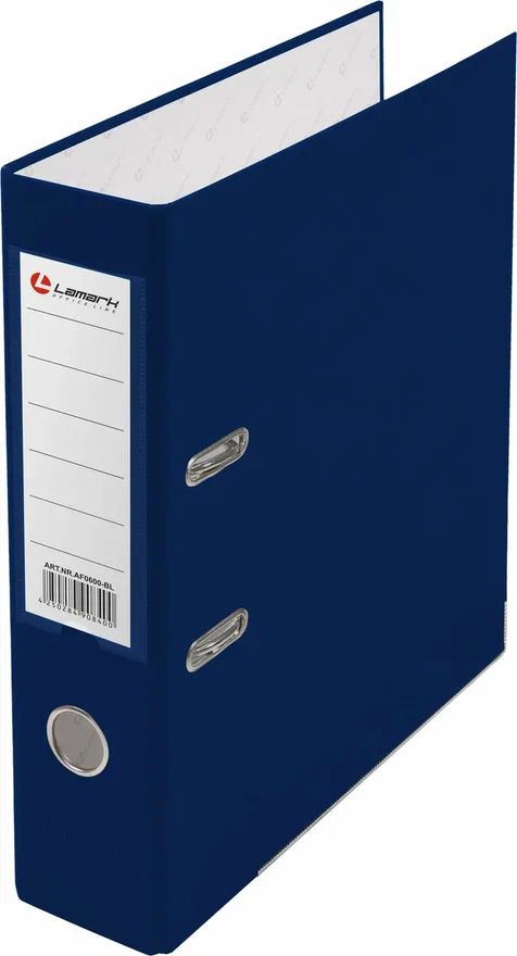 Папка-регистратор LAMARK РР с арочным механизмом изготовлена из плотного картона, с внешней стороны заламинированного полипропиленовой пленкой (РР) с текстурой "лен", внутри оклеена бумагой с алфавитно-цифровым полем для классификации на левой стороне. Прорези на крышке удерживают папку закрытой даже при большом количестве документов. Ширина корешка 80 мм. Вместимость до 480 листов формата А4. Нижние края защищены металлическим кантом, что сохраняет папку при длительной интенсивной эксплуатации. Карман со сменной индексной вставкой на корешке. Цвет синий. Поставляются в разобранном виде по 50 штук в транспортной упаковке.