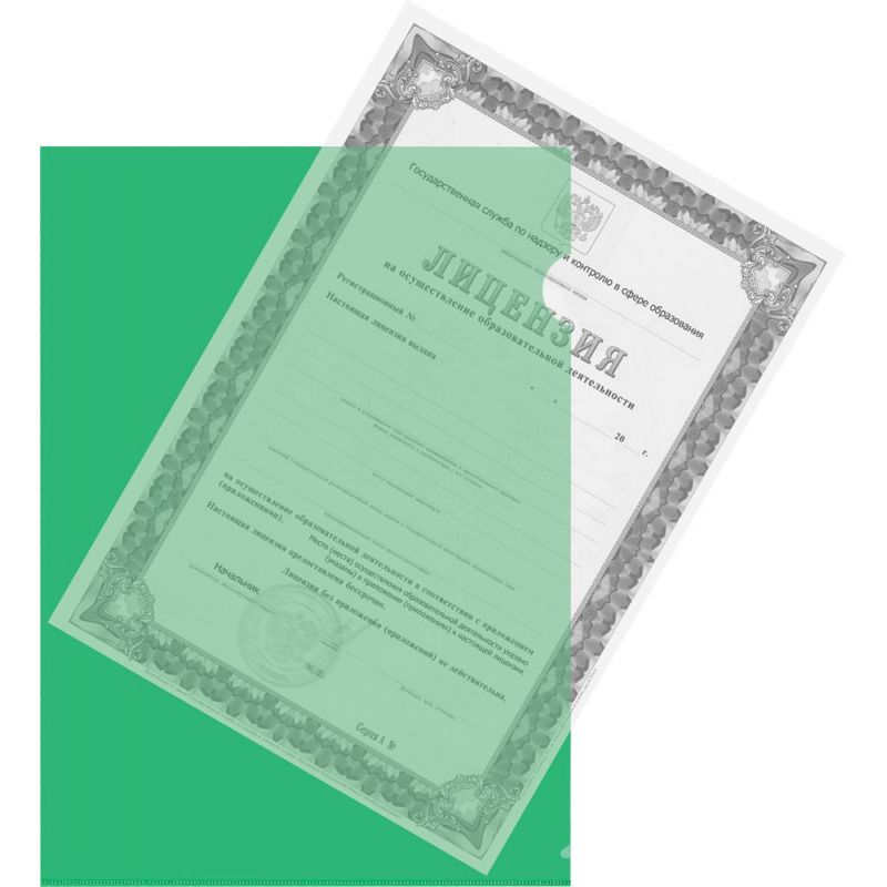 Папка-уголок Е310 180мкр, зел. прозрач. цена за 1шт
