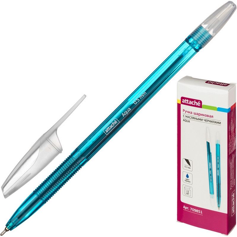 Ручка шариковая Attache Aqua - это особый взгляд на красоту и практичность. Модель корпуса изготовлена из прозрачного пластика голубого цвета, имеет граненую форму. Снабжена вентилируемым колпачком и наконечником белого цвета. Сменный стержень длиной 142 мм снабжен игольчатым наконечником заправлен высококачественными синими чернилами на масляной основе. Диаметр пишущего узла 0,7 мм создает тонкую линию письма, равную 0,5 мм. Ручка Attache Aqua идеально подойдет для каждодневного использования