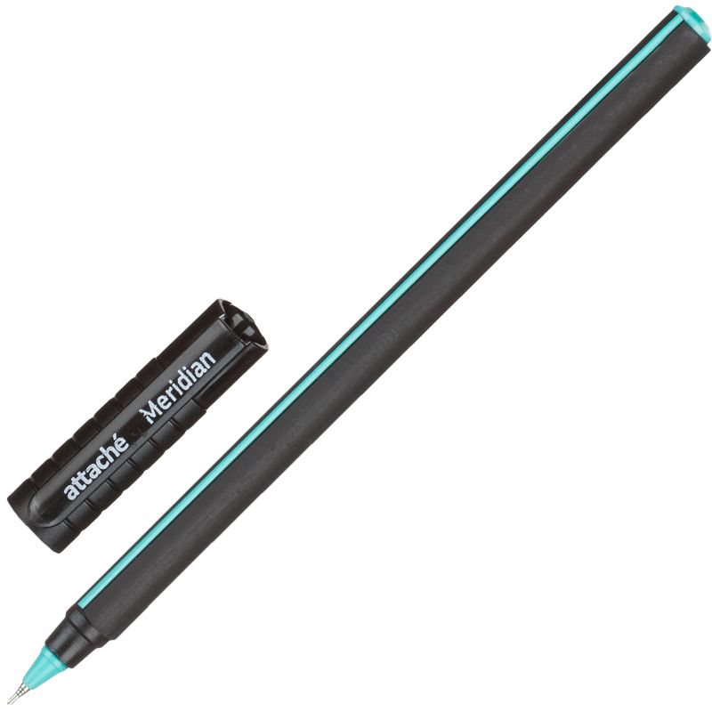 Ручка шариковая Attache Meridian. Простой и надежный пишущий механизм, выполнен из высококачественных материалов. Прочный колпачок выполнен из полипропилена. Трехгранный корпус черно-бирюзового цвета выполнен из качественного пластика. Толщина линии письма - 0,35 мм. Диаметр шарика - 0,6 мм. Цвет чернил - синий. Прорезиненный корпус. Форма наконечника - игольчатая.