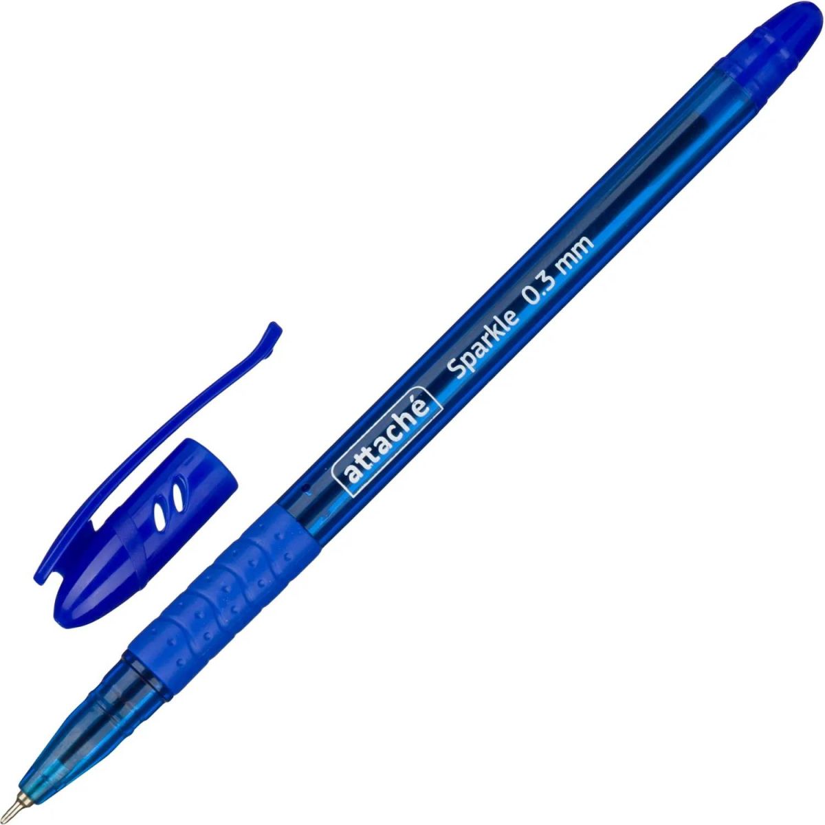 Ручка шариковая Attache Sparkle — это яркий и запоминающийся дизайн! Модель выполнена в эргономичном пластиковом синем корпусе. Стильный дизайн ручки дополняет клип, позволяющий закрепить ручку в кармане или тетради для записей. Резиновая манжетка способствует надежному захвату пальцев и препятствует выскальзыванию. Сменный стержень длиной 136.6 мм заправлен масляными чернилами синего цвета, снабжен игольчатым наконечником диаметром 0.5 мм, который обеспечивает сверхтонкую линию письма 0.3 мм. Ручка обеспечивает непревзойденно легкое и мягкое письмо, яркие и насыщенные линии.