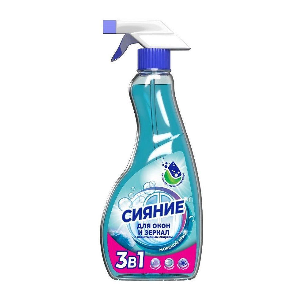 Чистящее средство 3в1 Сияние для стекол с нашатырным спиртом Морской бриз - стеклоочиститель с нашатырным спиртом придает обрабатываемой поверхностям дополнительный блеск.